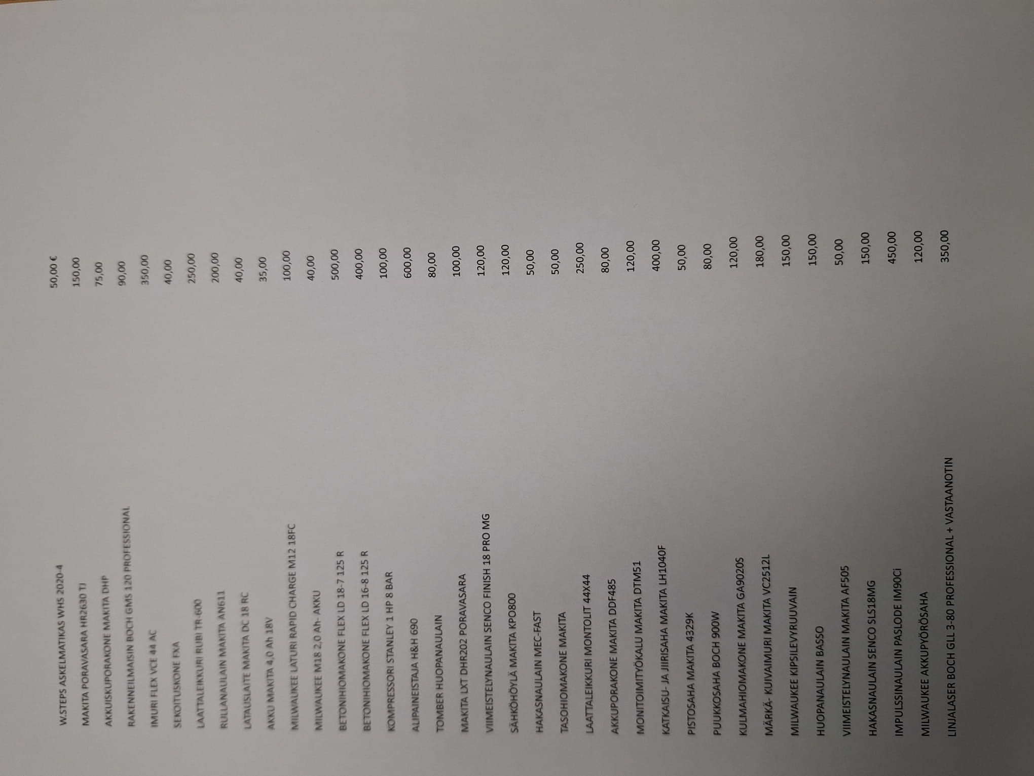 | Mahdolliset viat ja puutteet | Tuotteet ovat hyväkuntoisia ja toimivia. |